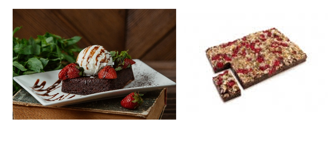 Brownie de frambuesas precortado: acompañado con nuestro helado de vainilla La Menorquina, crea un contraste espectacular y resulta un final perfecto para cualquier comida o cena.