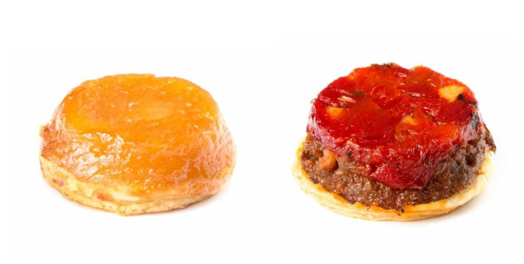 Mini tatin de manzana y foie/ rabo y pimiento asado: un entrante muy sabroso, con una mezcla de sabores que conquistará a los paladares más exigentes